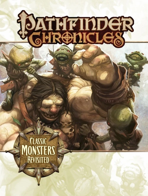 | “ | Things that go Bump in the NightThey are the lurking shapes glimpsed briefly beyond the slowly opening closet door, the half-heard hissing from under the bed, the secret scratching at the window shuttered against the night. You know they’re out there, watching, waiting for you to be alone, and when you hover on the edge of wakefulness and nightmare-haunted sleep, you know they will come for you. These are the monsters you remember from your youth, and though you’ve grown, as midnight approaches, the child within knows the monsters never left your bedside. Within the pages of this book, we reintroduce you to the monsters you remember from the good-old days, monsters that may have started to feel old and stale—even safe. Monsters should never feel safe. In Classic Monsters Revisited, we examine ten of the game’s most popular and familiar monsters—bugbears, gnolls, hobgoblins, orcs, lizardfolk, trolls, ogres, kobolds, minotaurs, and of course goblins, reimagining them for the Pathfinder Chronicles campaign setting while striving to keep them true to their roots. New feats, new gear, new gods, and a wealth of knowledge about the society, history, and inner workings of these ten monsters lie within this book, waiting for you to discover them anew. And they’re just as monstrous as you remember. |